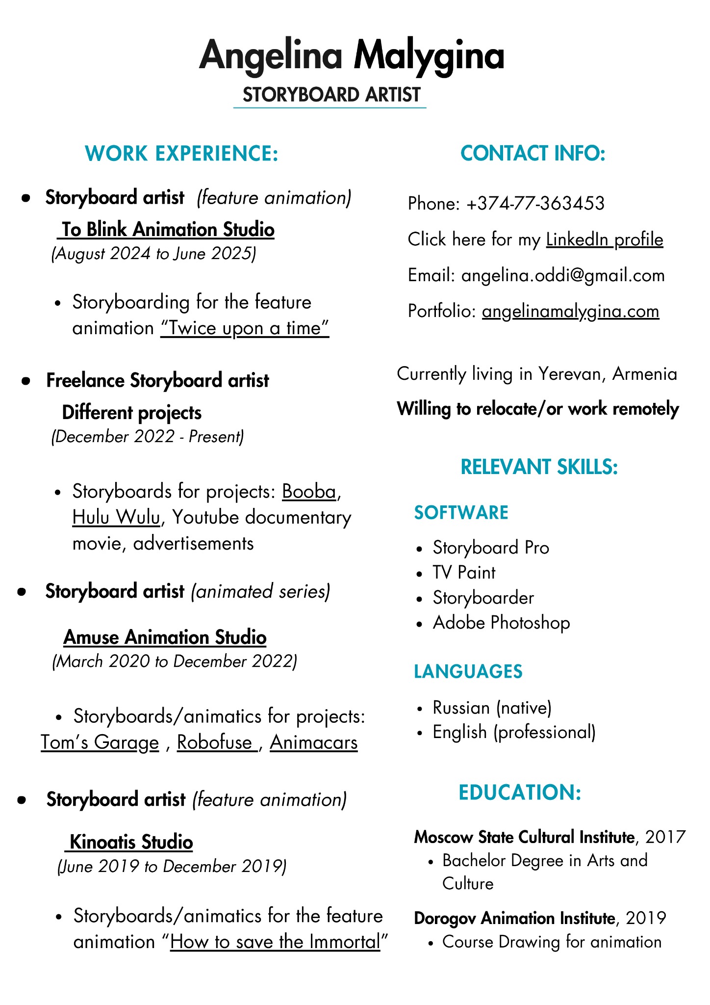 My name is Angelina and I'm a storyboard artist.